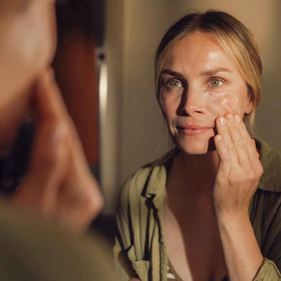Morgens und abends 2–3 Tropfen auf die gereinigte Haut auftragen. Sanft einarbeiten, anschließend Pflegecreme verwenden.